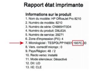 Pour connaitre la version du micro-logiciel actuellement active sur votre imprimante, éditez un rapport d’état imprimante. Vous trouverez la version mentionnée en rubrique 7 - MICROLOGICIEL. Exemple :